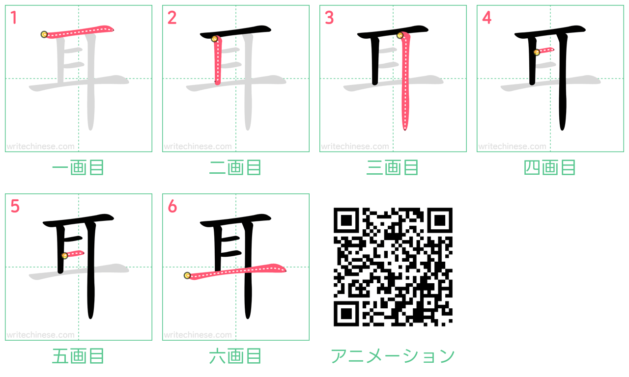 視覚的なステップバイステップの指示を使って、中国語の漢字「耳」の書き順を一画ずつマスターしましょう。