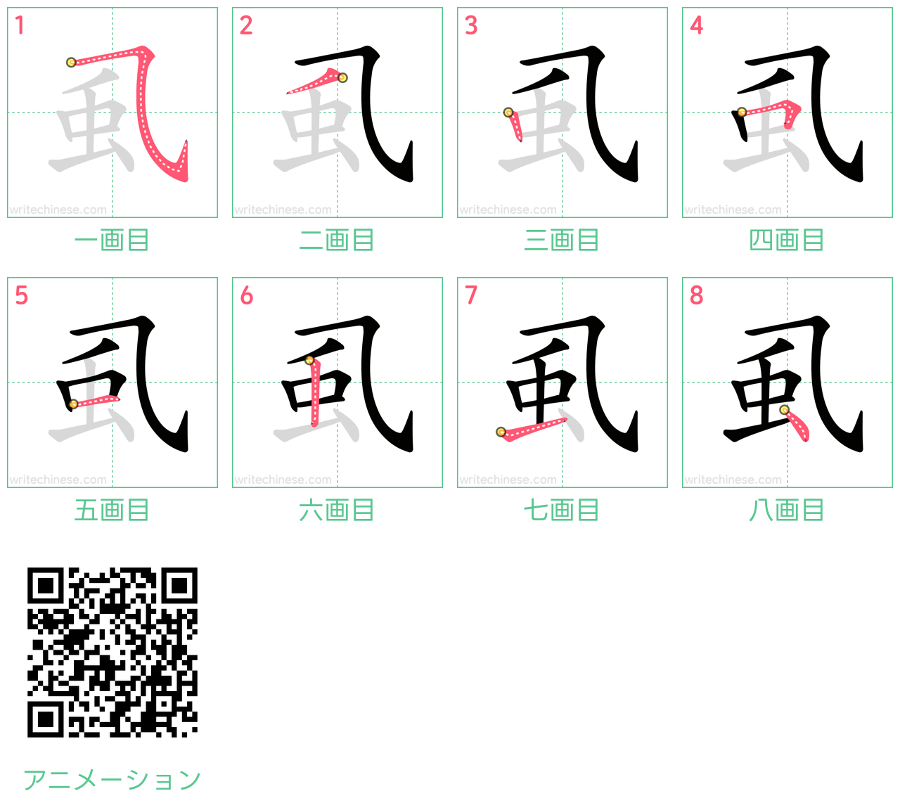 視覚的なステップバイステップの指示を使って、中国語の漢字「虱」の書き順を一画ずつマスターしましょう。