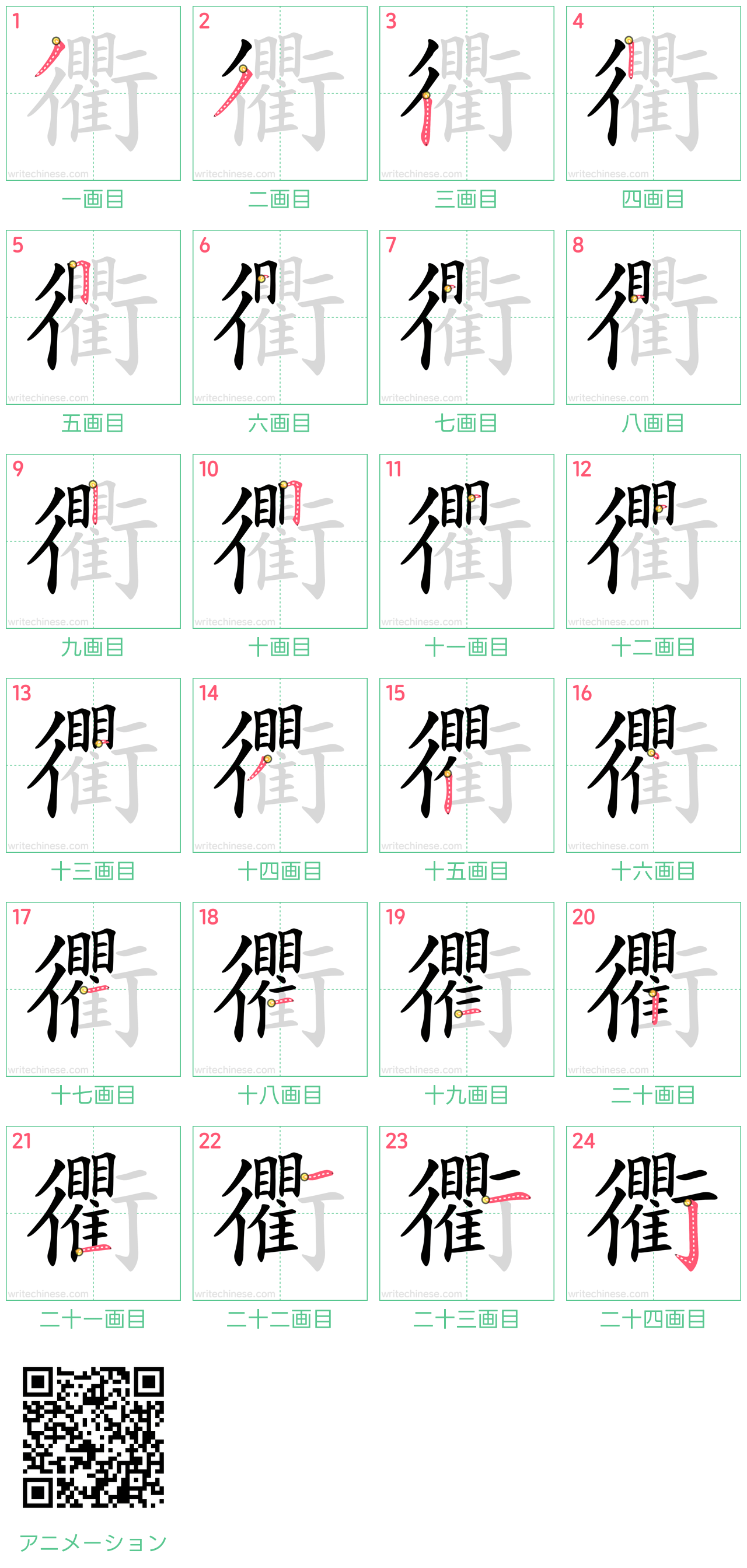 視覚的なステップバイステップの指示を使って、中国語の漢字「衢」の書き順を一画ずつマスターしましょう。