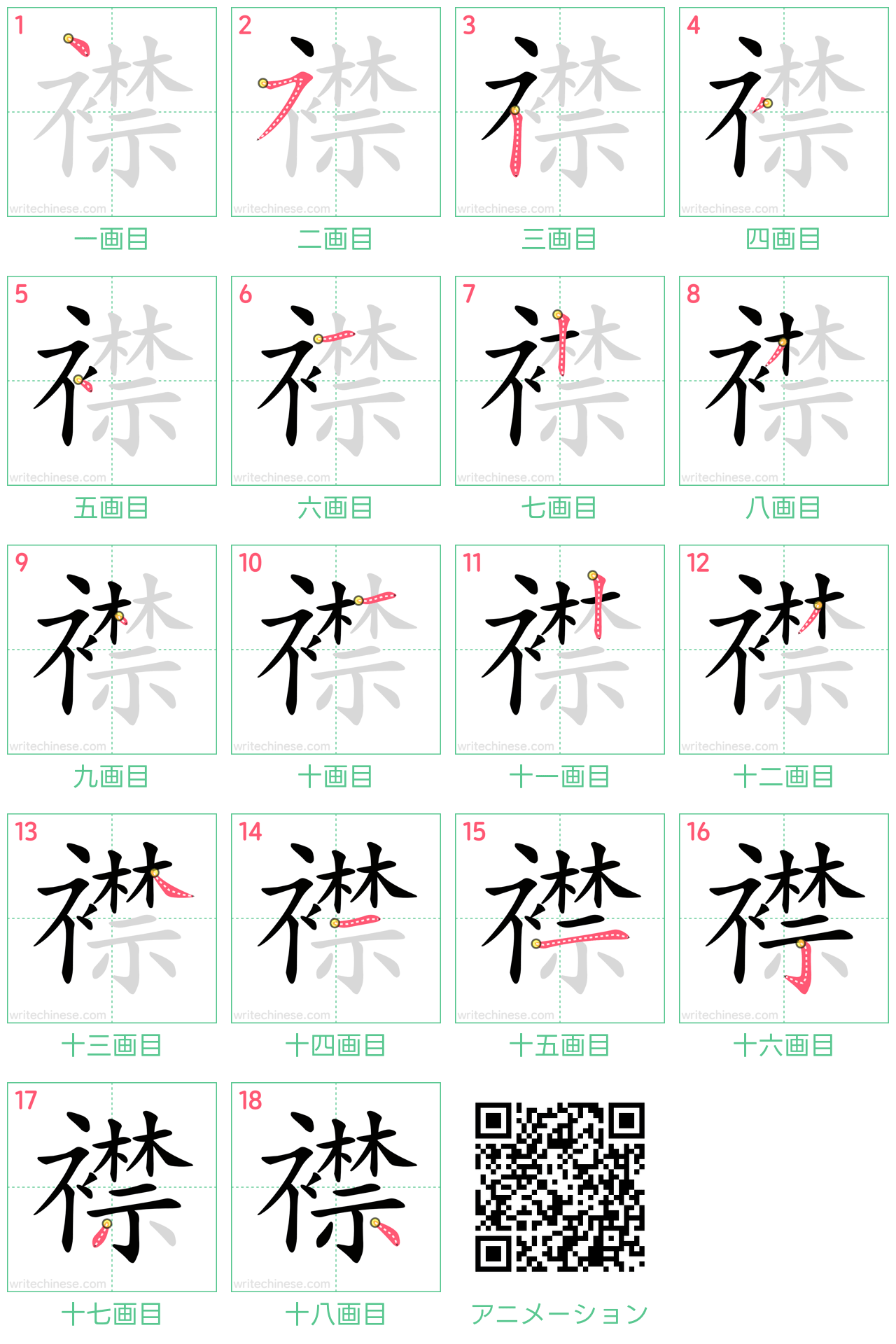 視覚的なステップバイステップの指示を使って、中国語の漢字「襟」の書き順を一画ずつマスターしましょう。
