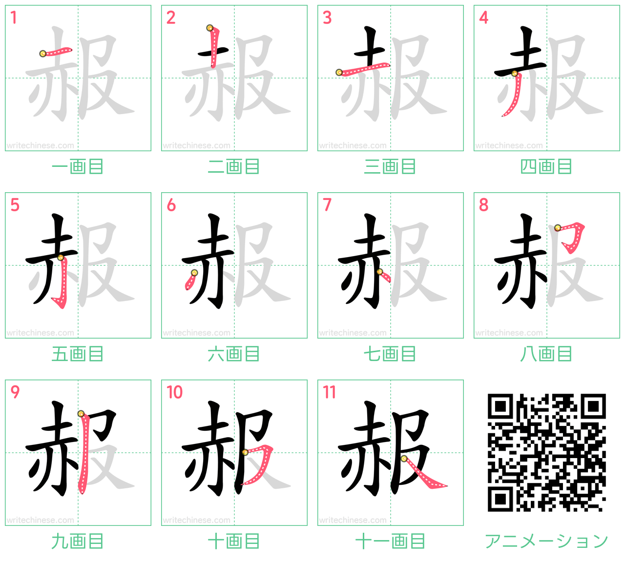一画ずつ:赧の書き順