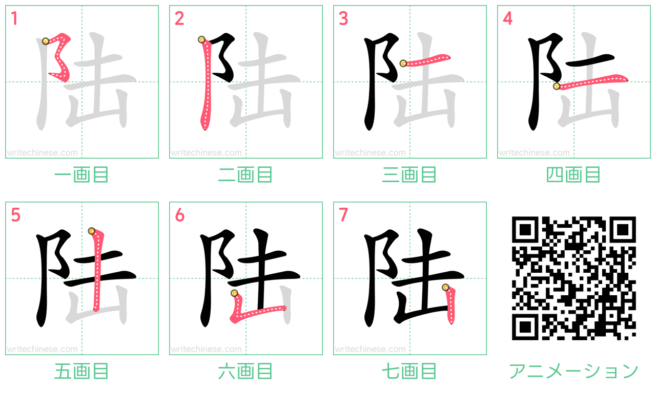 中国語の漢字「陆」の書き順 筆順