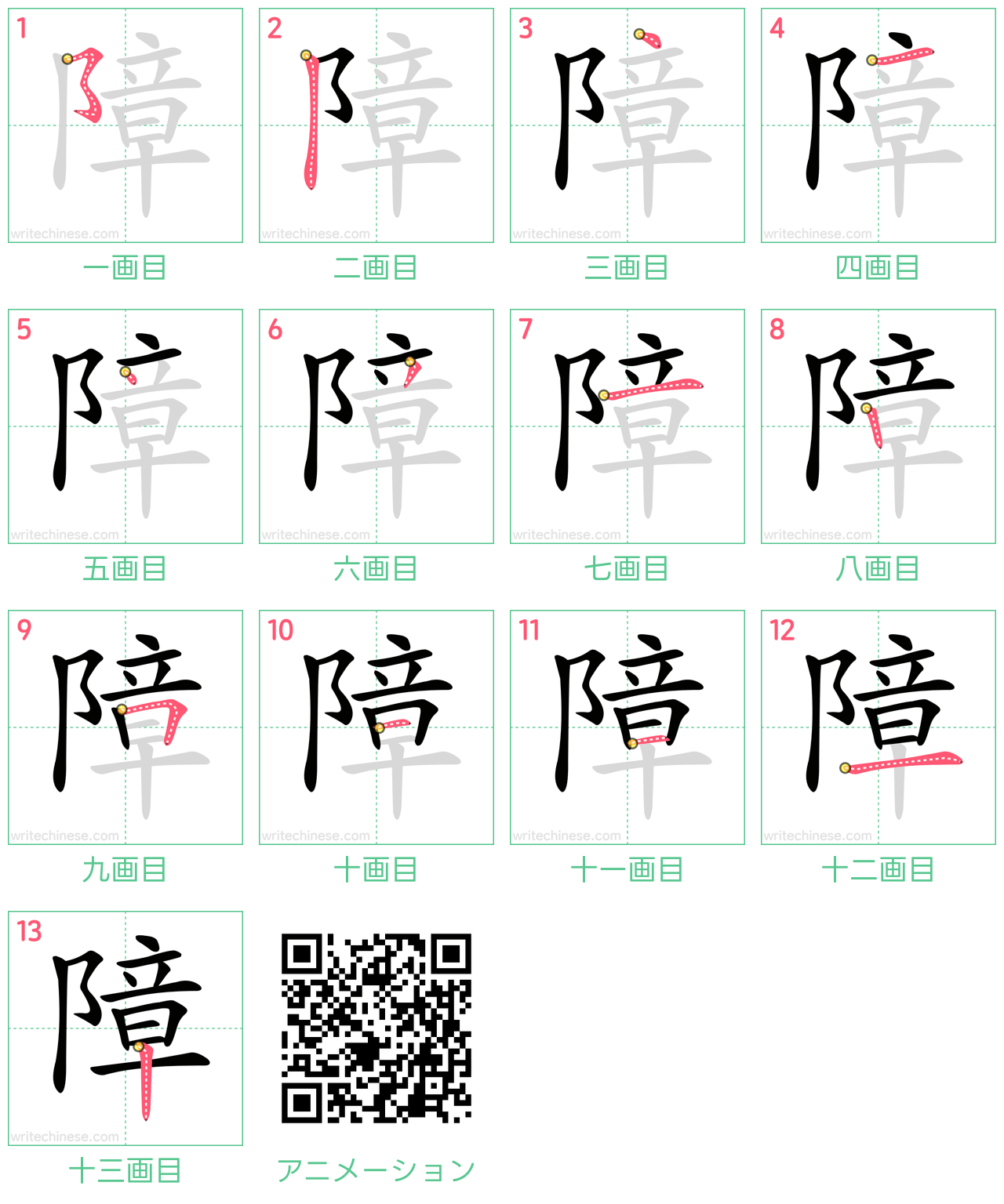視覚的なステップバイステップの指示を使って、中国語の漢字「障」の書き順を一画ずつマスターしましょう。