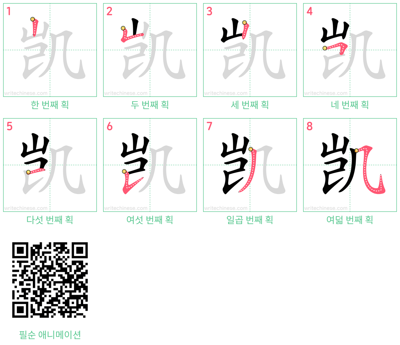 凯의 획순 연습용 인쇄 가능한 연습지입니다