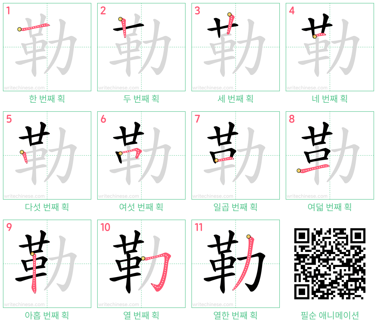 "勒"의 획순 애니메이션을 보면서 중국 문자 "勒"을 쓰는 법을 배워 보세요.
