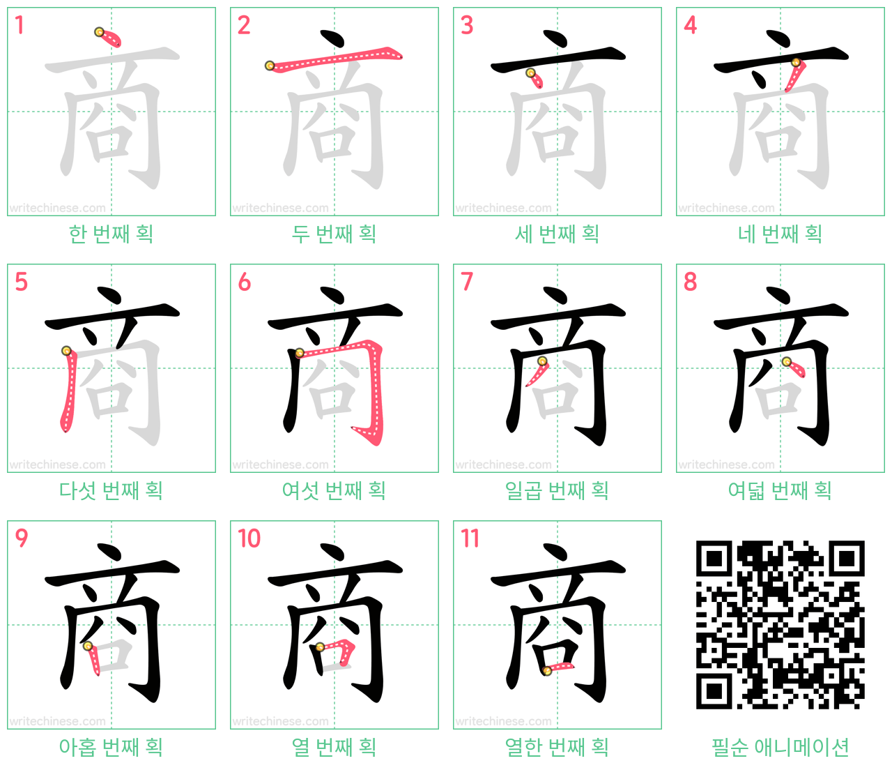 商의 획순 연습용 인쇄 가능한 연습지입니다
