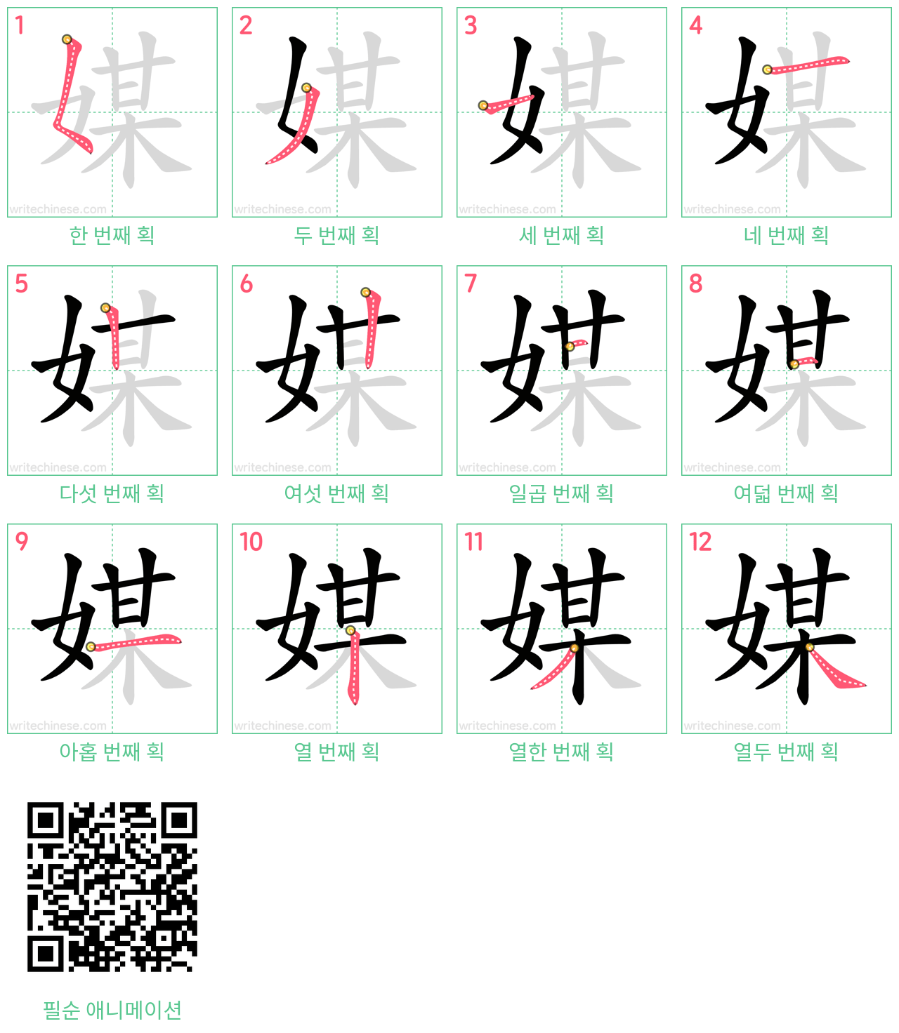 1 《설문》: 매, 모의하다. 두 성씨를 모이게 하다.