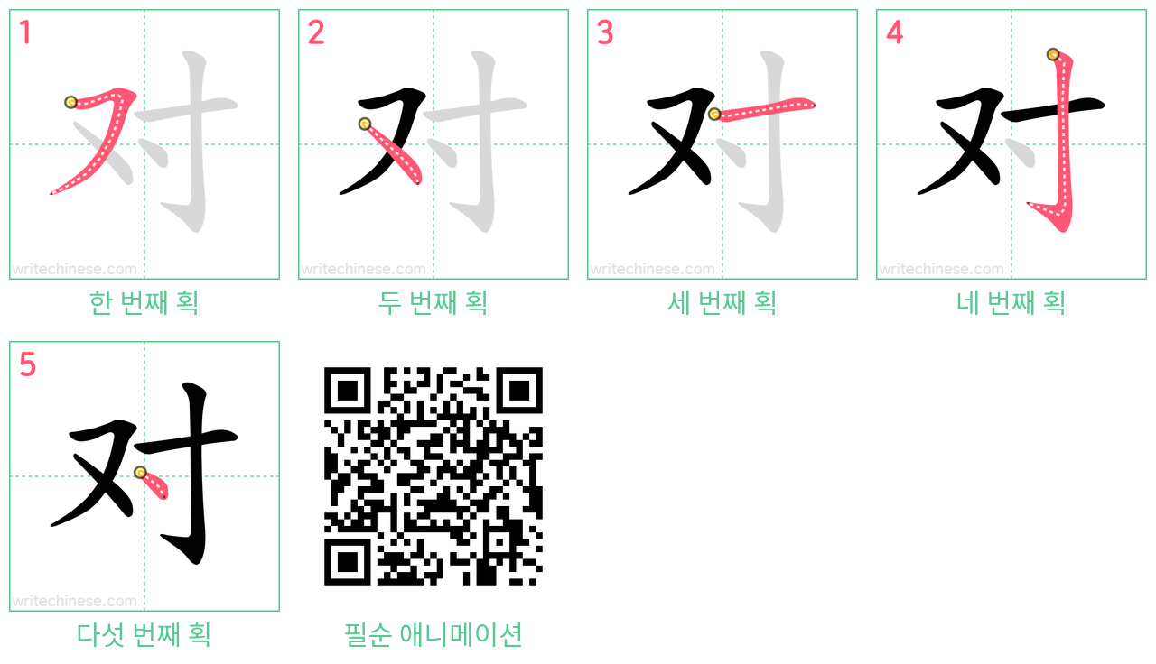 "对"의 획순 애니메이션을 보면서 중국 문자 "对"을 쓰는 법을 배워 보세요.
