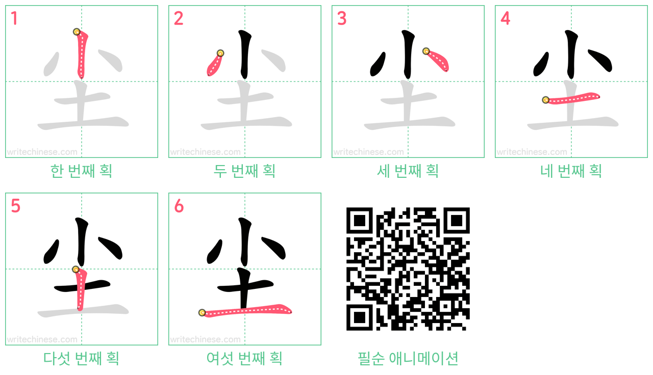 尘의 획순 연습용 인쇄 가능한 연습지입니다