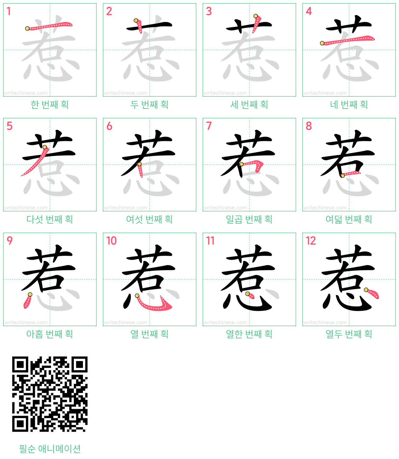 이 웹사이트의 중국어 획순 이미지, 애니메이션, 비디오 및 인쇄 가능한 연습지는 개인 또는 교실에서 무료로 사용할 수 있습니다. 사용할 때 출처와 웹사이트의 URL을 표기해 주세요.