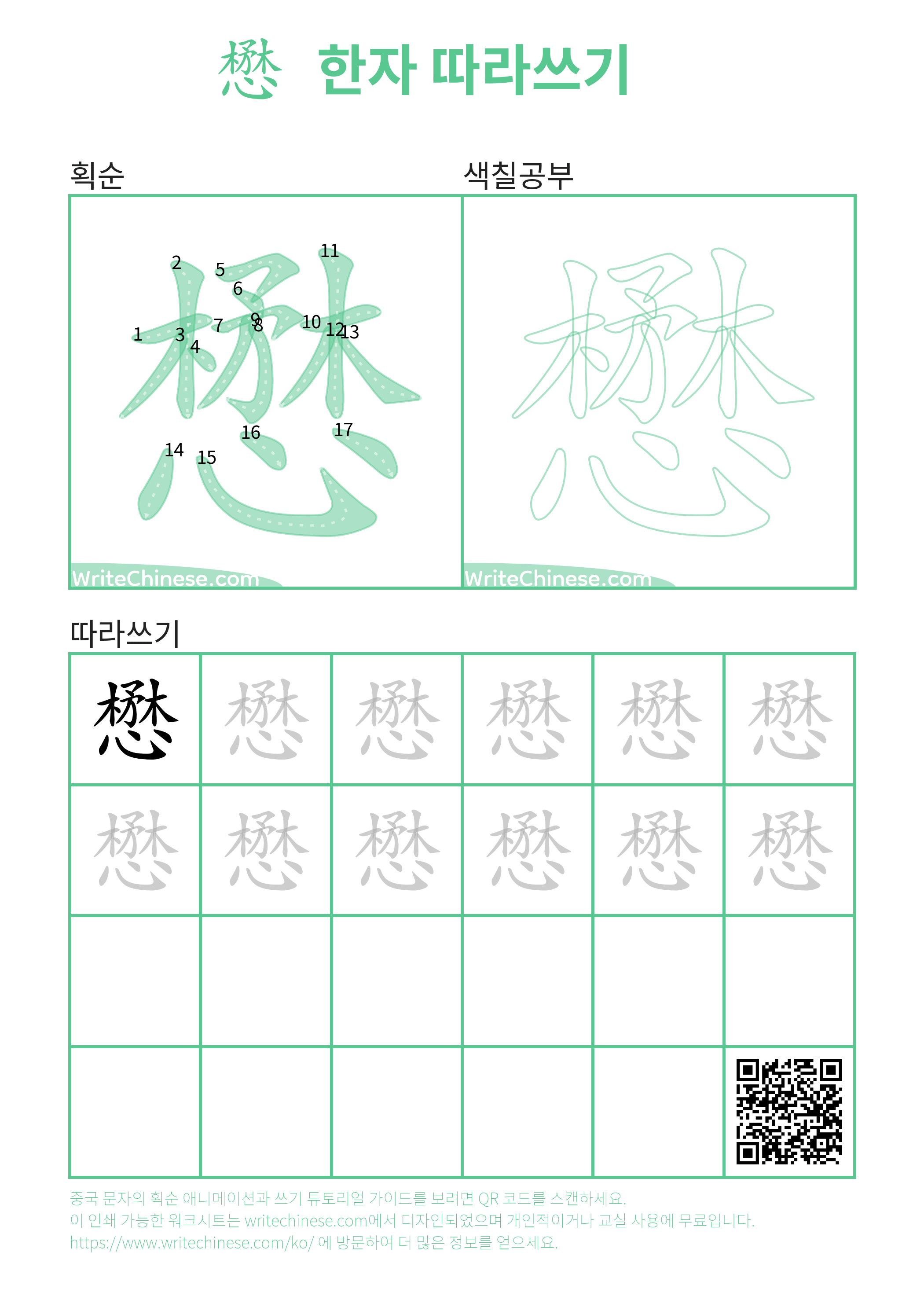무료로 인쇄 가능한 懋 필기 연습지입니다