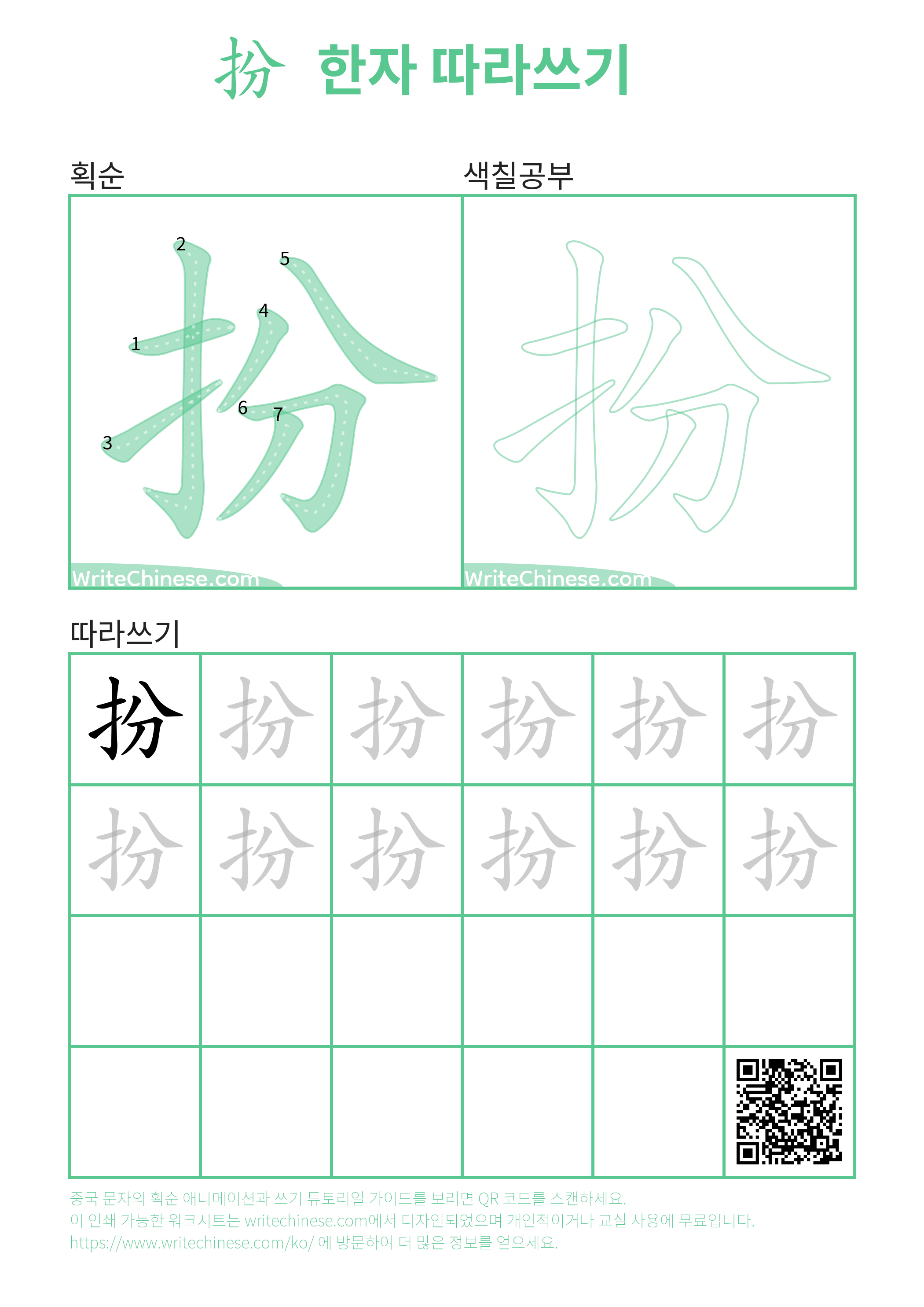 "扮"의 획순 애니메이션을 보면서 중국 문자 "扮"을 쓰는 법을 배워 보세요.