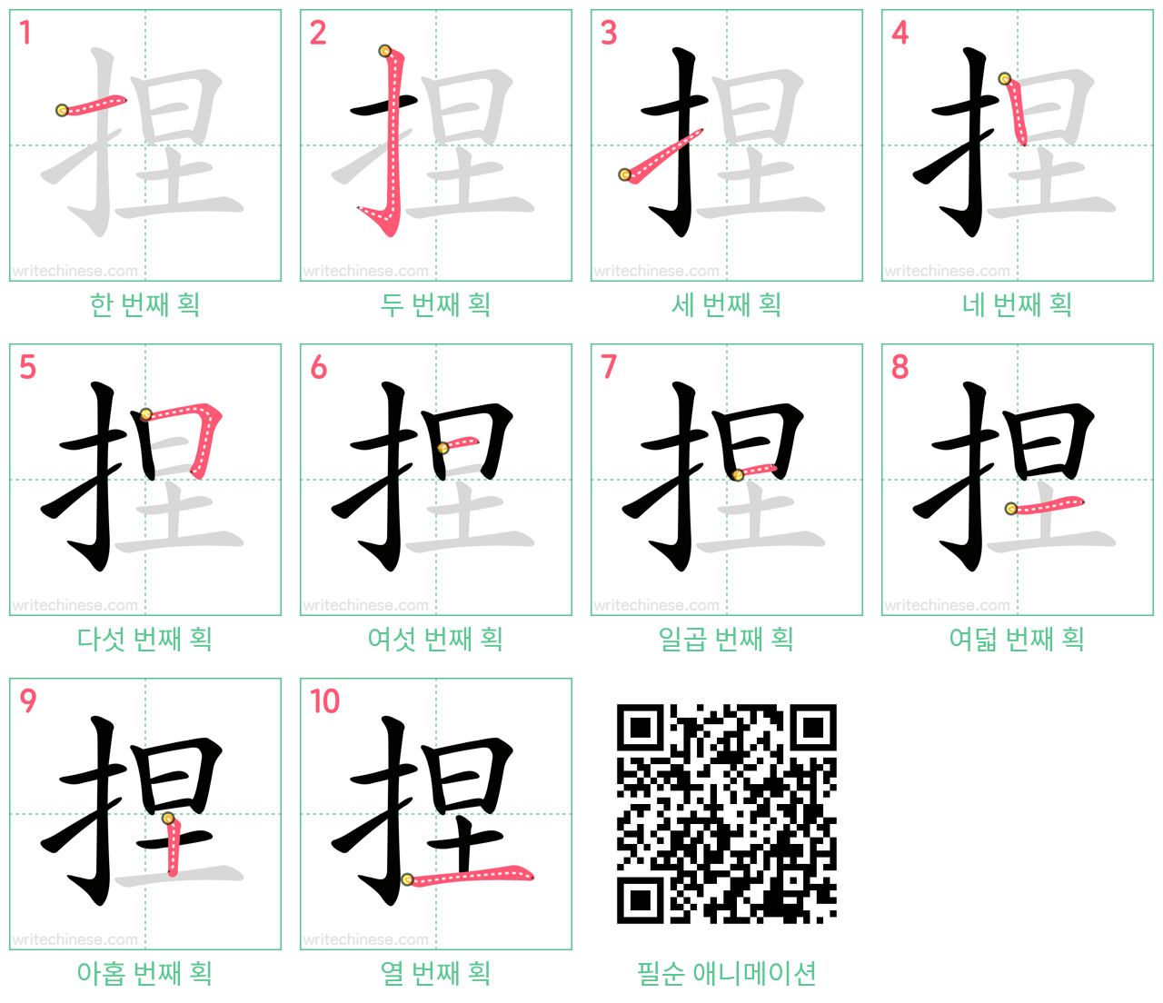 **본뜻: 손가락으로 부드러운 것을 일정한 형태로 만들다**