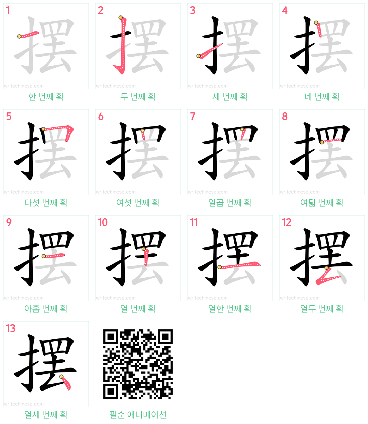 摆 step-by-step stroke order diagrams