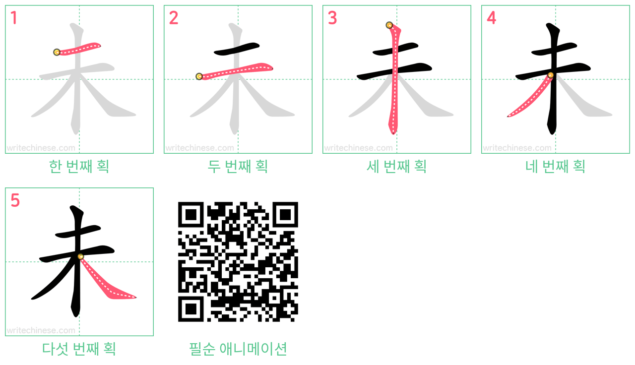 * *(“未”는 과거를 부정하고 “不”는 미래를 부정하지만 가끔 “未”가 “不”으로 사용될 수도 있다.)*