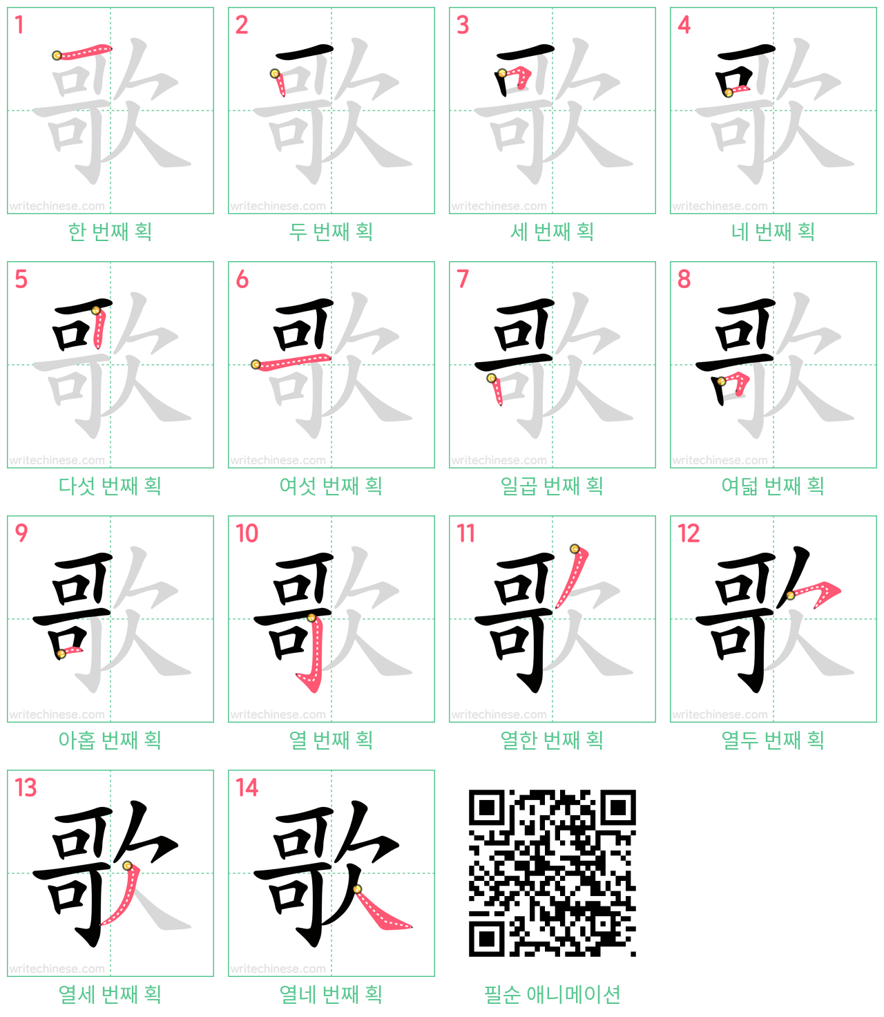또如: 对歌(일문일답으로 노래 부르기); 高歌(목소리 높여 노래하기); 歌吹(노래 부르기, 불기); 歌鼓(노래 부르며 북치기); 歌戏(노래하며 놀기)