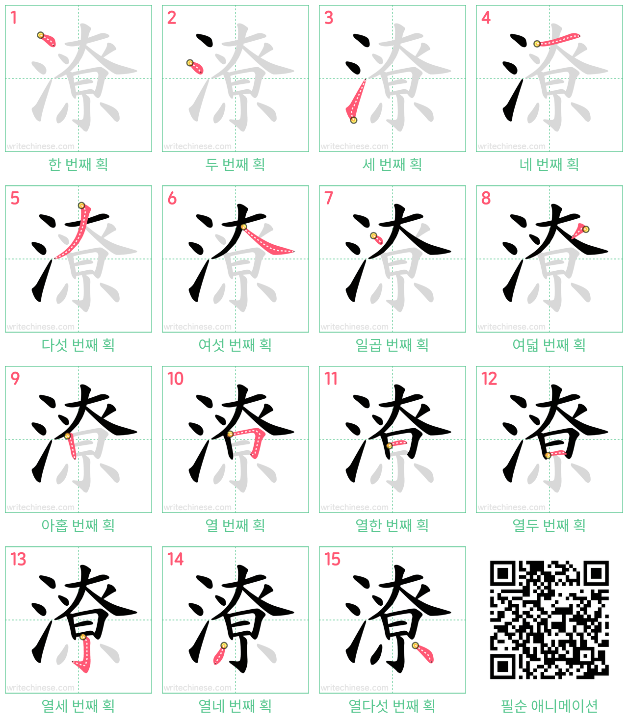 "潦"의 획순 애니메이션을 보면서 중국 문자 "潦"을 쓰는 법을 배워 보세요.