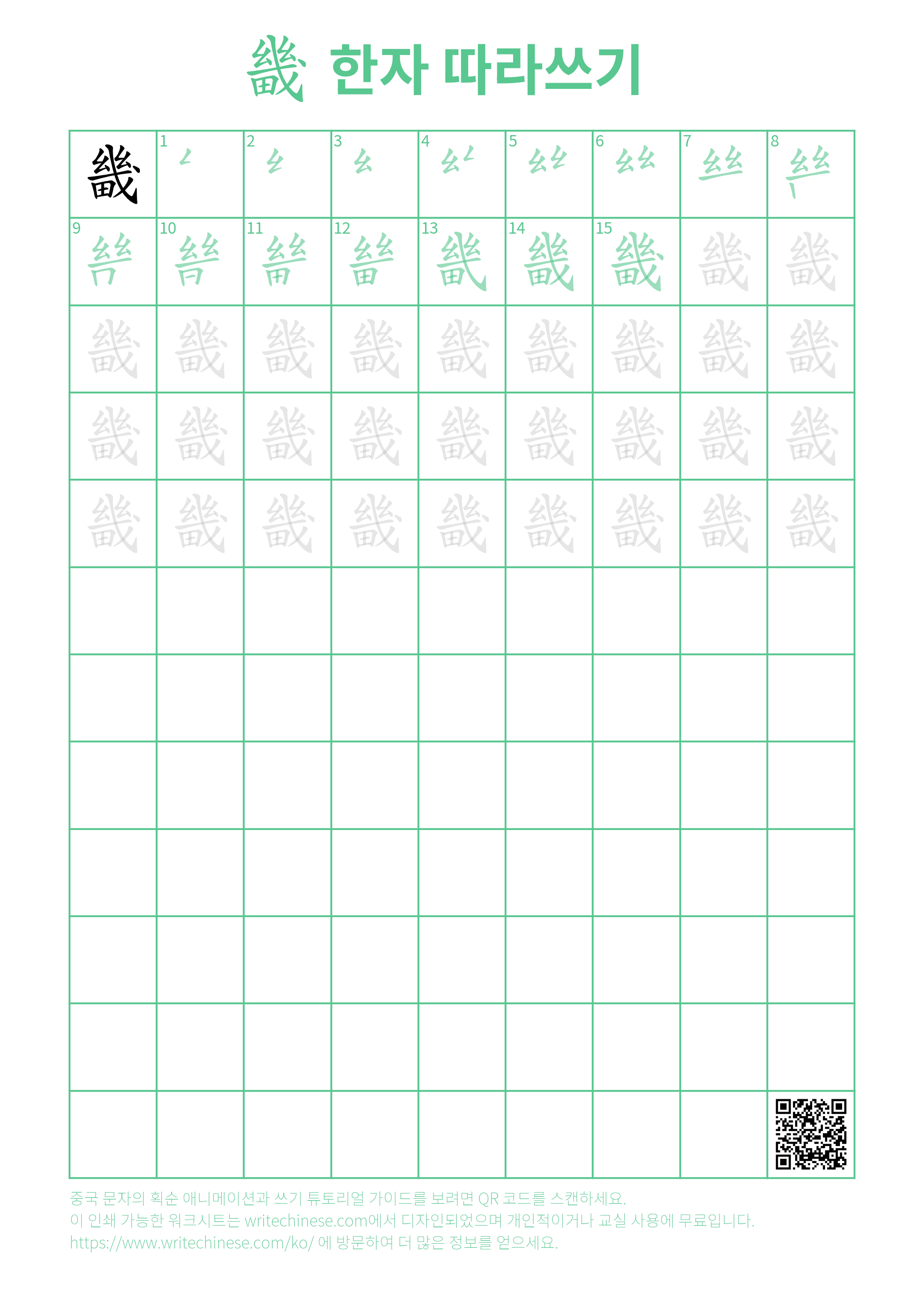 이 웹사이트의 중국어 획순 이미지, 애니메이션, 비디오 및 인쇄 가능한 연습지는 개인 또는 교실에서 무료로 사용할 수 있습니다. 사용할 때 출처와 웹사이트의 URL을 표기해 주세요.
