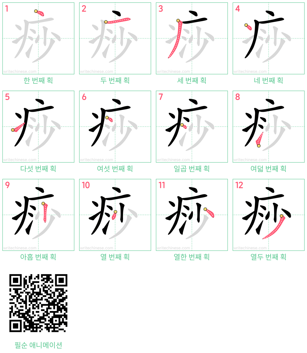痧의 획순 연습용 인쇄 가능한 연습지입니다