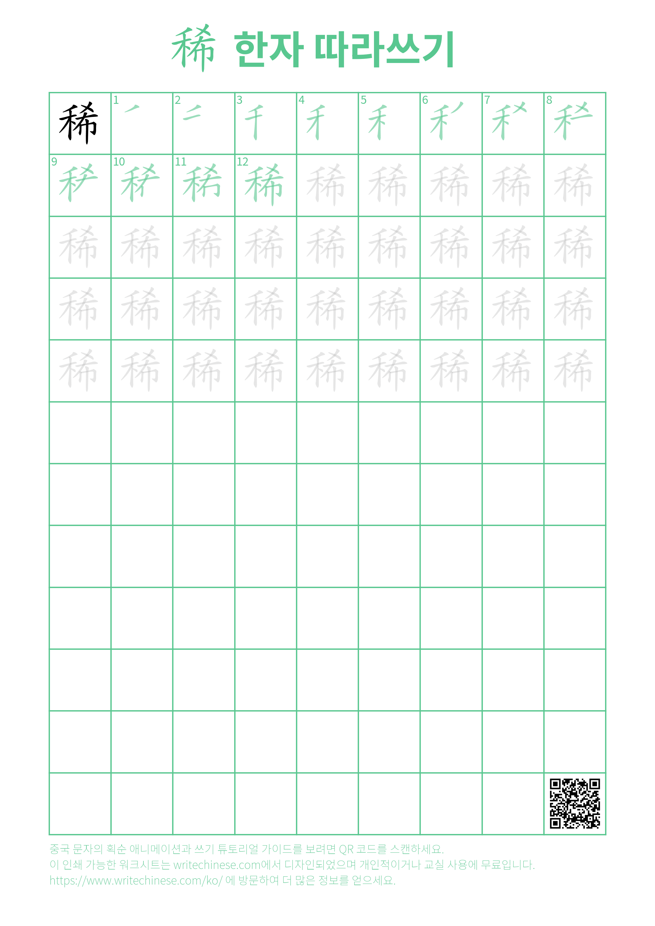* 적다: ~적다. ~드물다. ~희귀하다. 고~년.