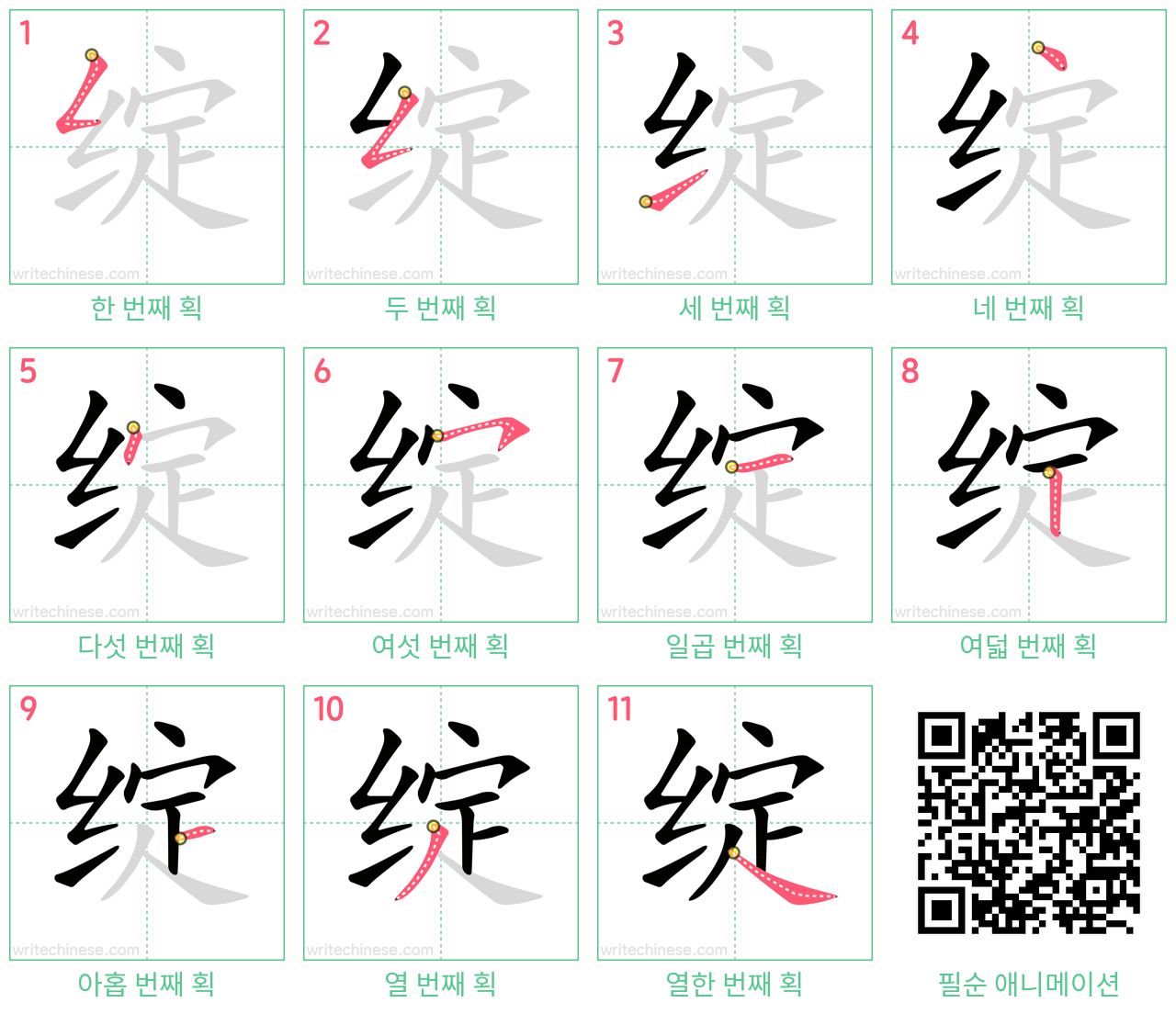한 획 한 획: 绽의 쓰기 순서. 시각적인 단계별 안내를 통해 중국 문자 '绽'의 획을 하나씩 익혀 보세요.