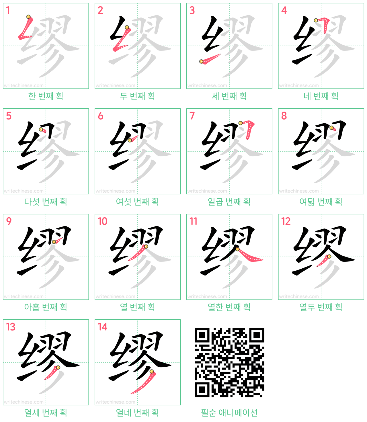 "缪"의 획순 애니메이션을 보면서 중국 문자 "缪"을 쓰는 법을 배워 보세요.