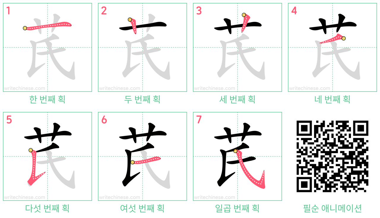 "芪"의 획순 애니메이션을 보면서 중국 문자 "芪"을 쓰는 법을 배워 보세요.