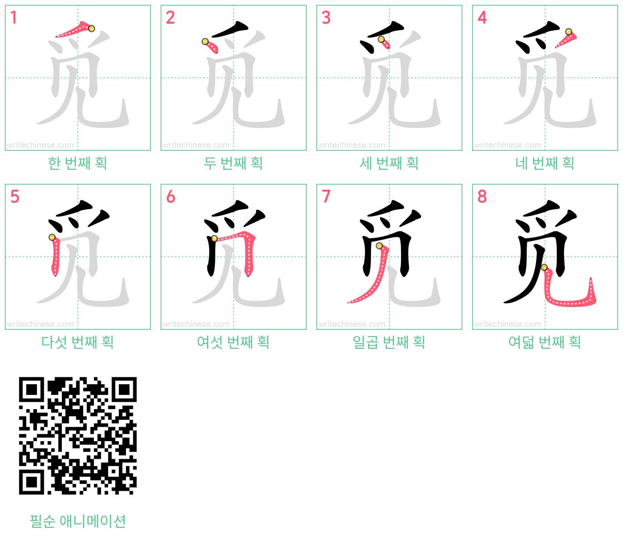 이 웹사이트의 중국어 획순 이미지, 애니메이션, 비디오 및 인쇄 가능한 연습지는 개인 또는 교실에서 무료로 사용할 수 있습니다. 사용할 때 출처와 웹사이트의 URL을 표기해 주세요.