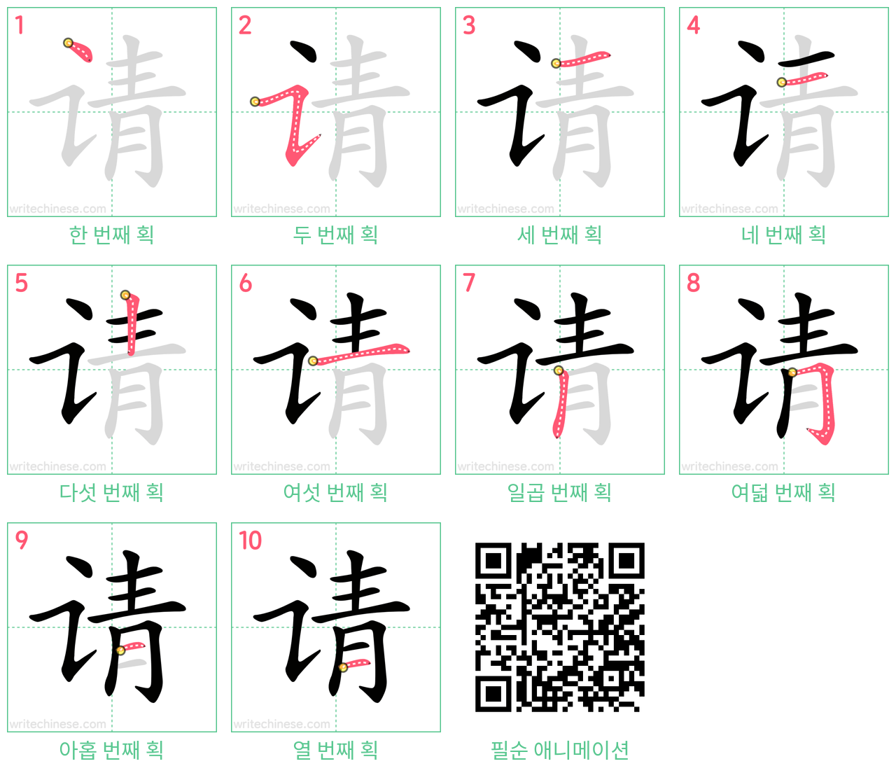 "请"의 획순 애니메이션을 보면서 중국 문자 "请"을 쓰는 법을 배워 보세요.