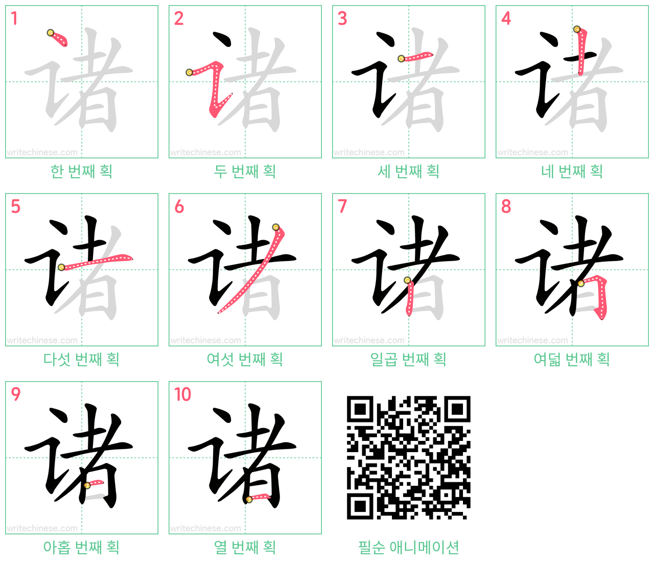 诸의 획순 연습용 인쇄 가능한 연습지입니다