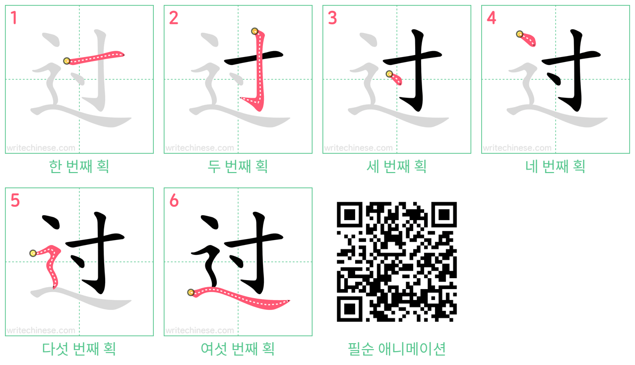 **동사 뒤에 '불' 또는 '득'와 함께 사용되어 초과 또는 통과의 의미를 나타낸다.**