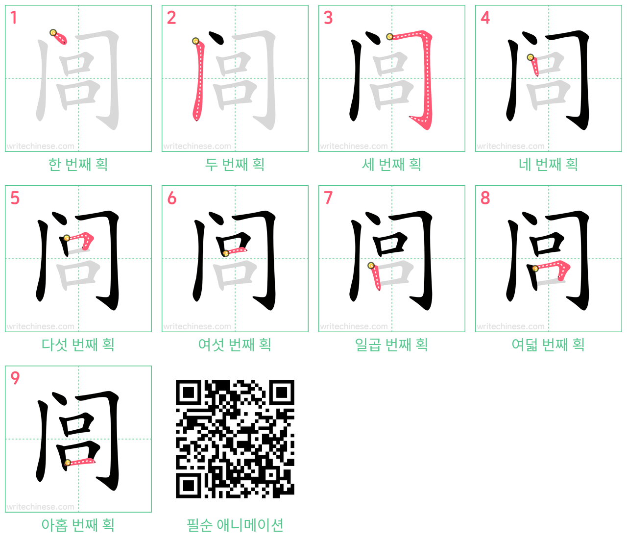 闾의 획순 애니메이션