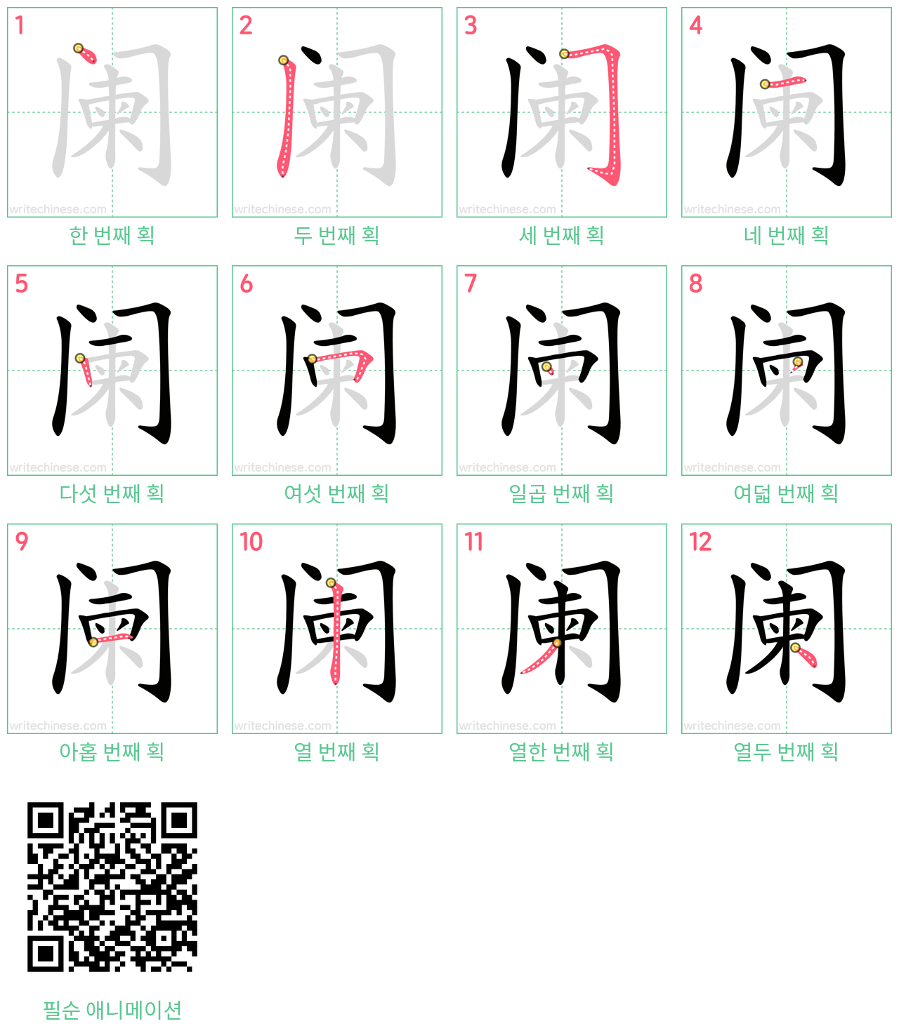 "阑"의 획순 애니메이션을 보면서 중국 문자 "阑"을 쓰는 법을 배워 보세요.