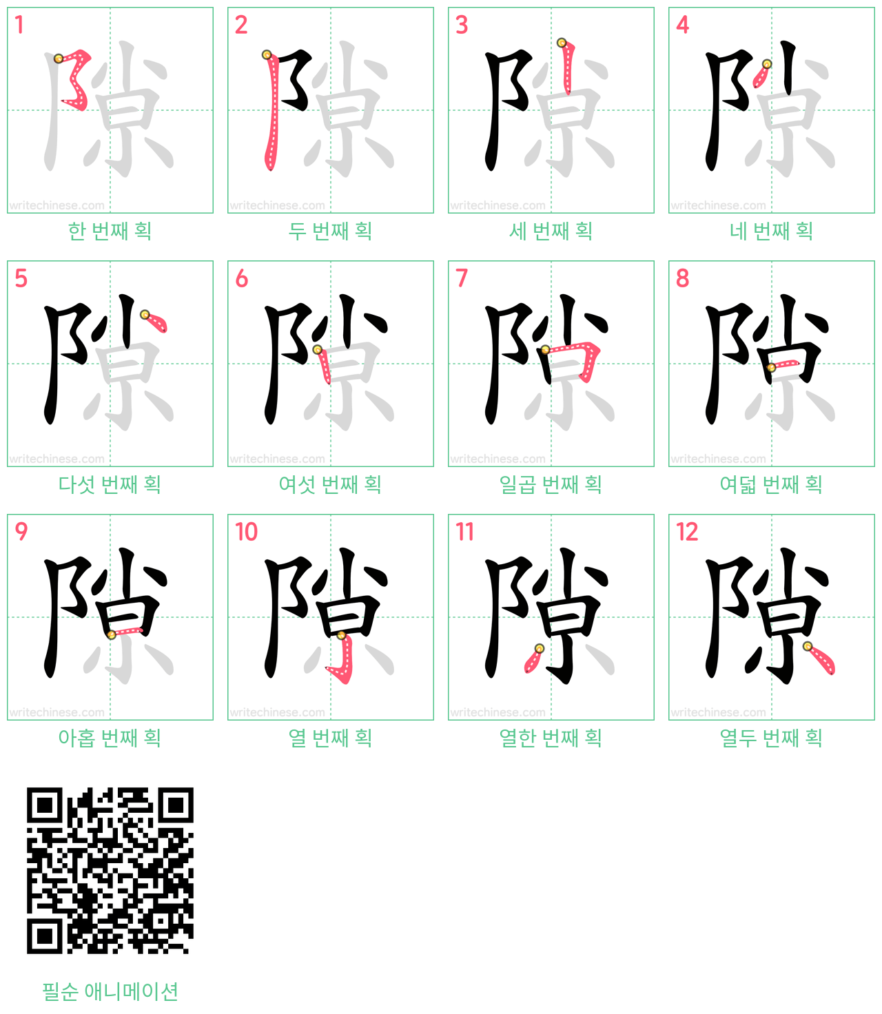 又如:仇隙(원한);隙难(원한);隙憾(원한, 증오).