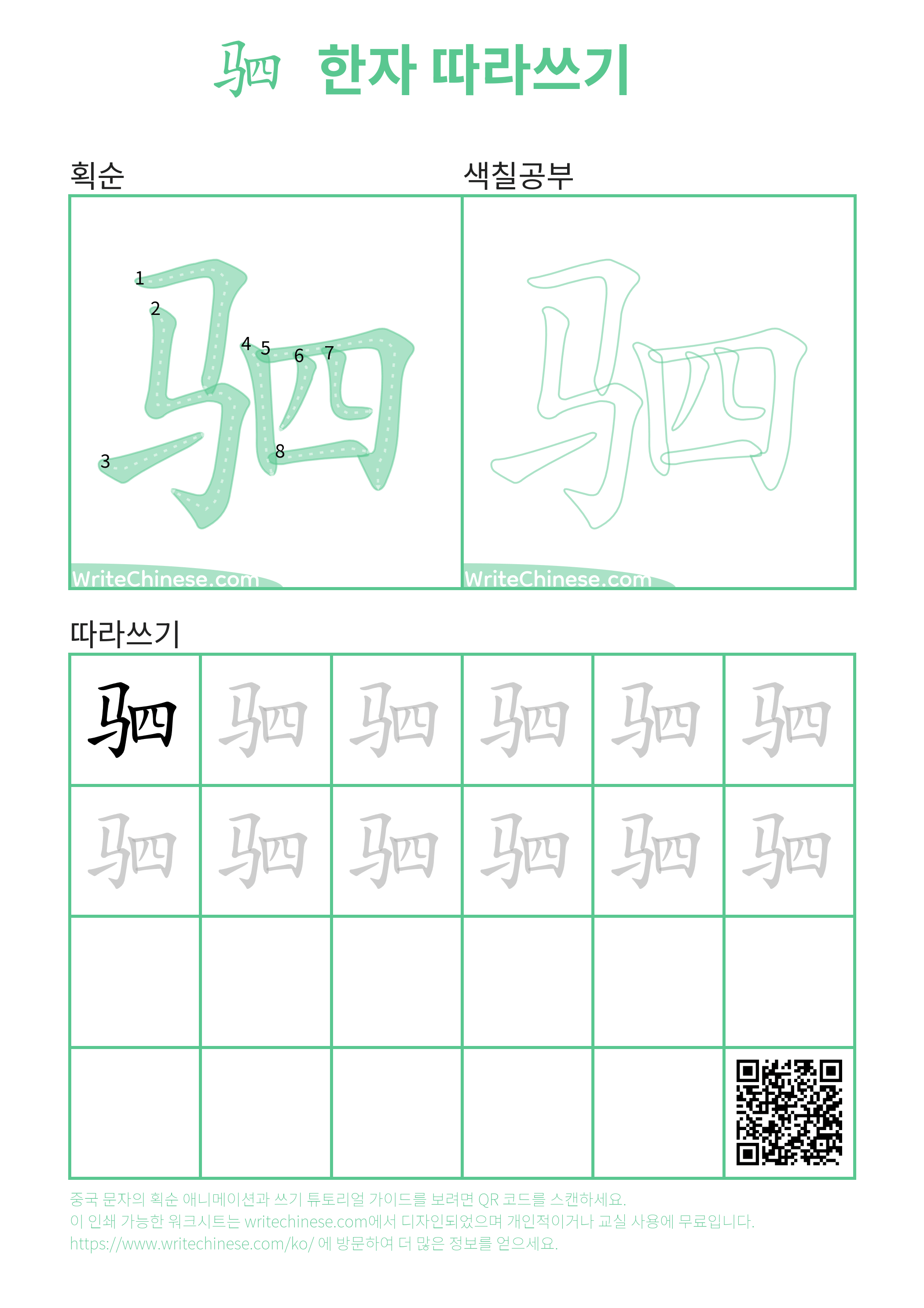 "驷"의 획순 애니메이션을 보면서 중국 문자 "驷"을 쓰는 법을 배워 보세요.