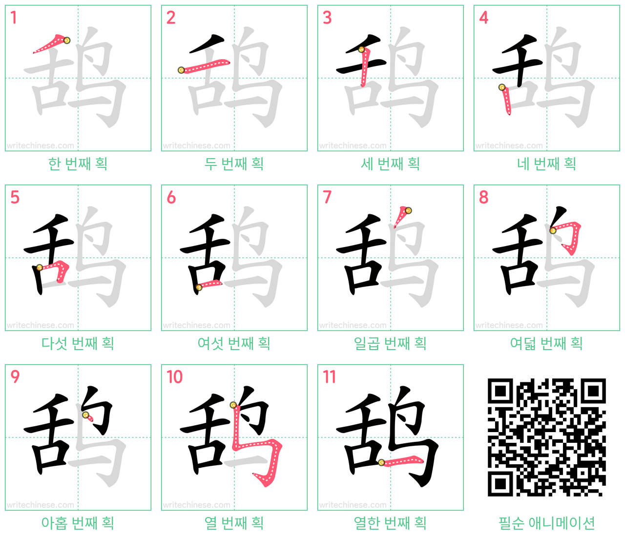 鸹의 획순 연습용 인쇄 가능한 연습지입니다