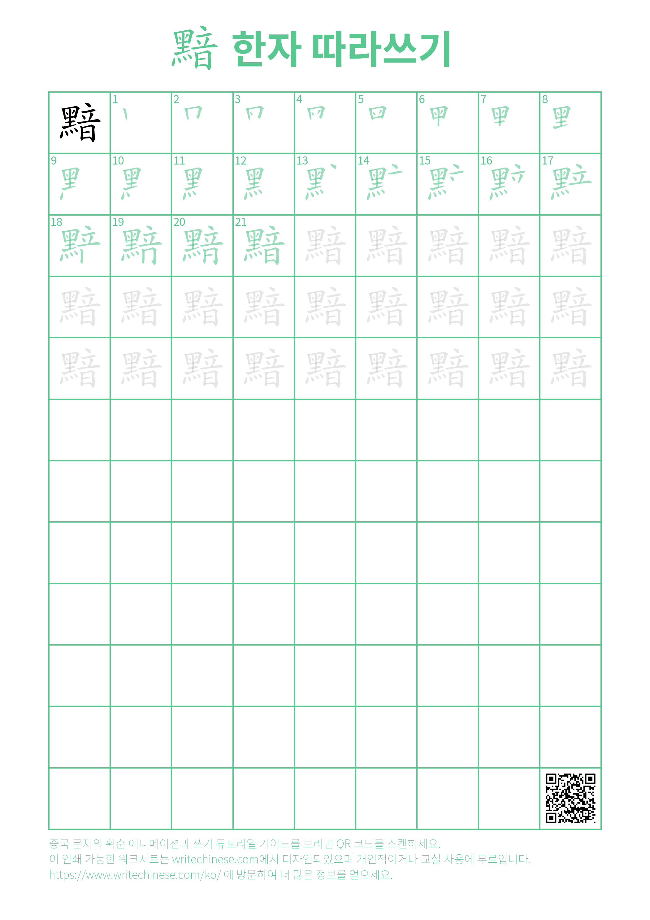 黯의 획순 연습용 인쇄 가능한 연습지입니다