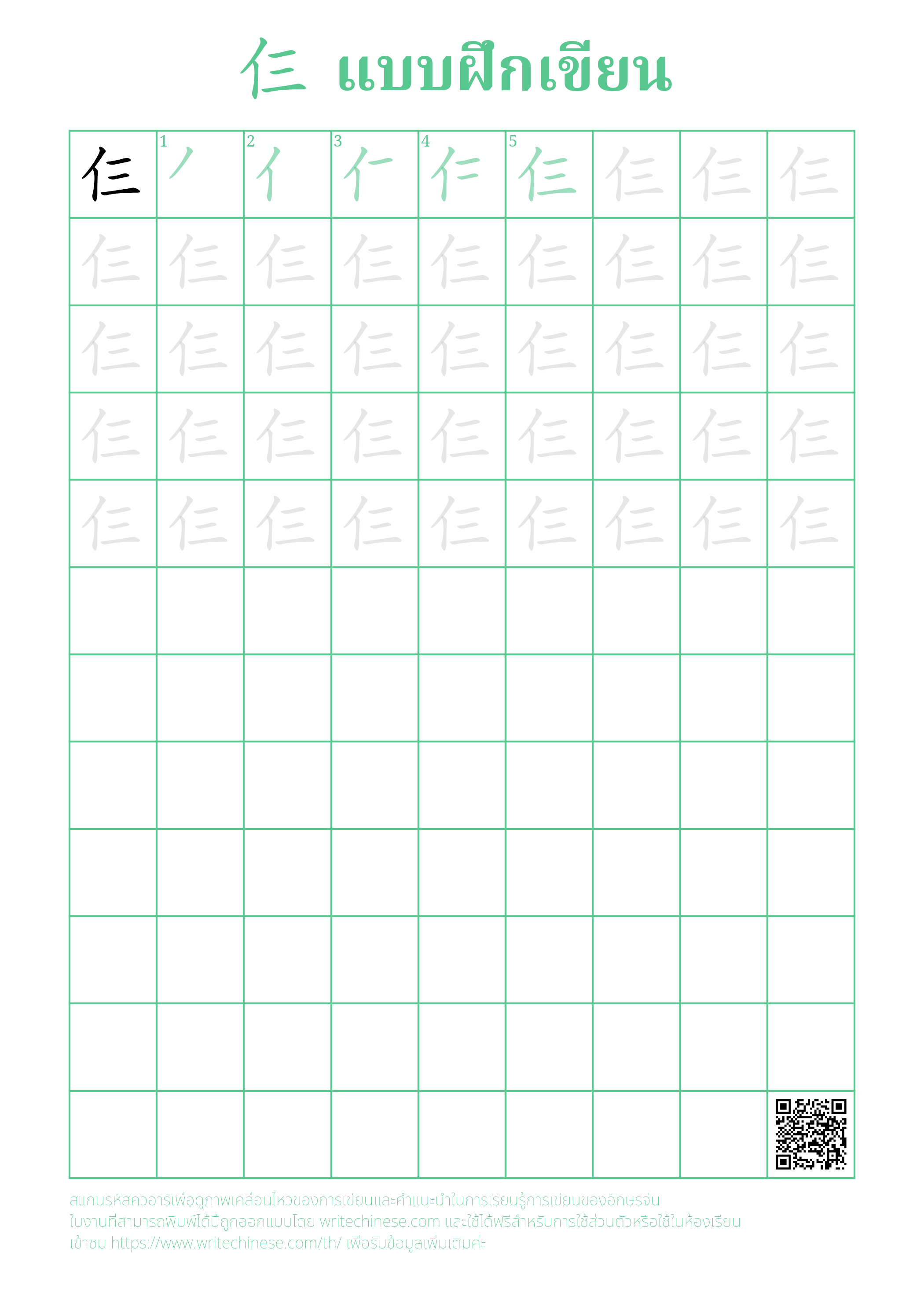 รูปภาพลำดับการเขียนตัวอักษรจีนทั้งหมด ภาพเคลื่อนไหว วิดีโอ และแผ่นงานพิมพ์ที่สามารถพิมพ์ได้ในเว็บไซต์นี้ เป็นฟรีสำหรับการใช้ส่วนบุคคลหรือใช้ในห้องเรียน กรุณาระบุแหล่งที่มาและ URL ของเว็บไซต์เมื่อนำมาใช้