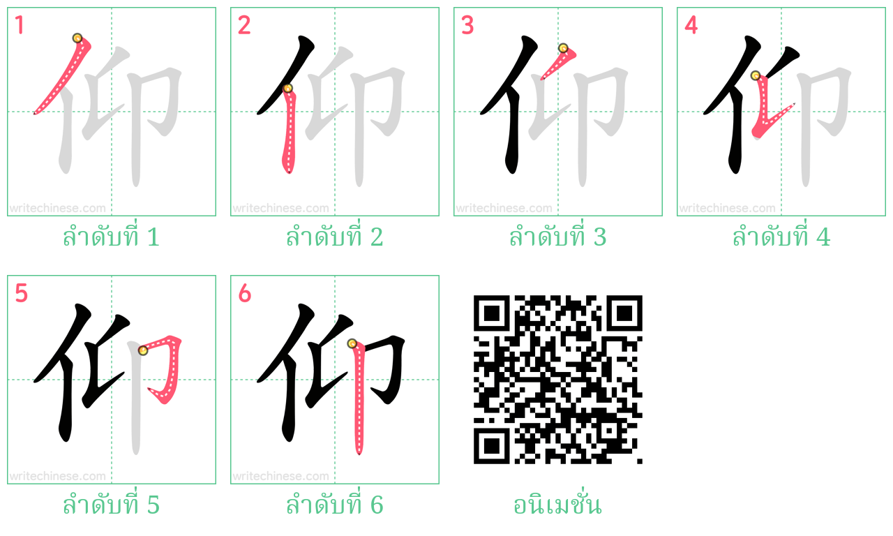 เรียนรู้การเขียนอักษรจีน "仰" โดยการดูภาพเคลื่อนไหวของลำดับการเสียบเส้นของ "仰"