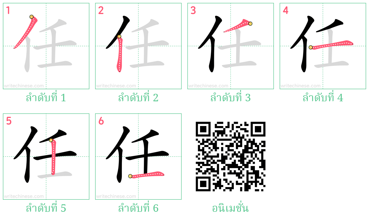 เรียนรู้การเขียนอักษรจีน "任" ขีดละขีดด้วยคำแนะนำขั้นตอนที่ชัดเจน