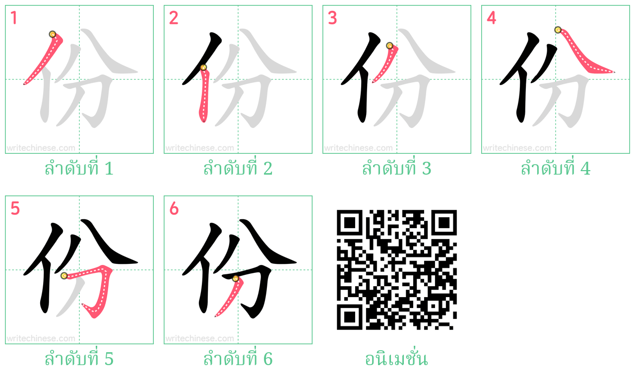 เรียนรู้การเขียนอักษรจีน "份" ขีดละขีดด้วยคำแนะนำขั้นตอนที่ชัดเจน