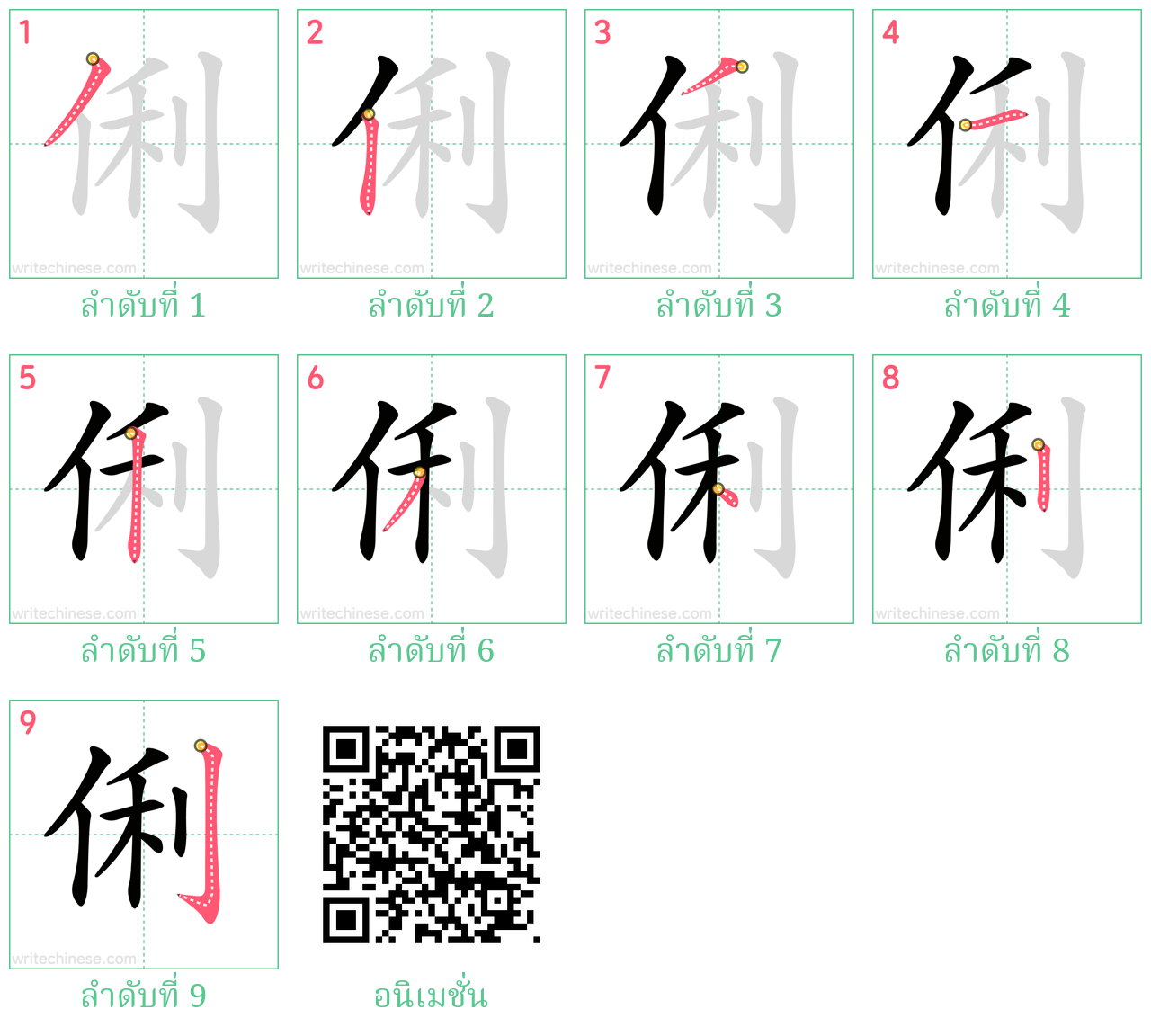 เรียนรู้การเขียนอักษรจีน "俐" โดยการดูภาพเคลื่อนไหวของลำดับการเสียบเส้นของ "俐"