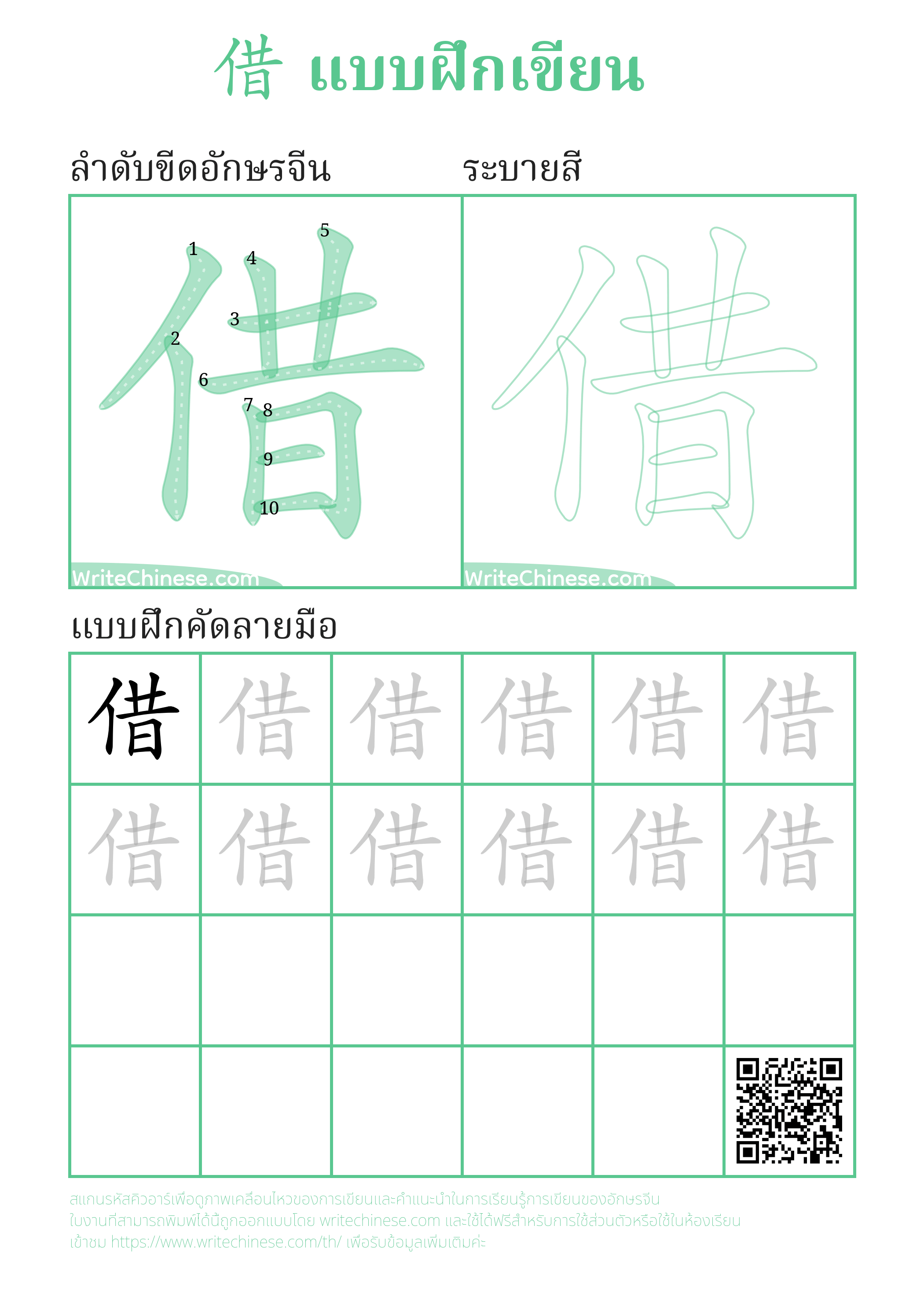 เรียนรู้การเขียนอักษรจีน "借" ขีดละขีดด้วยคำแนะนำขั้นตอนที่ชัดเจน