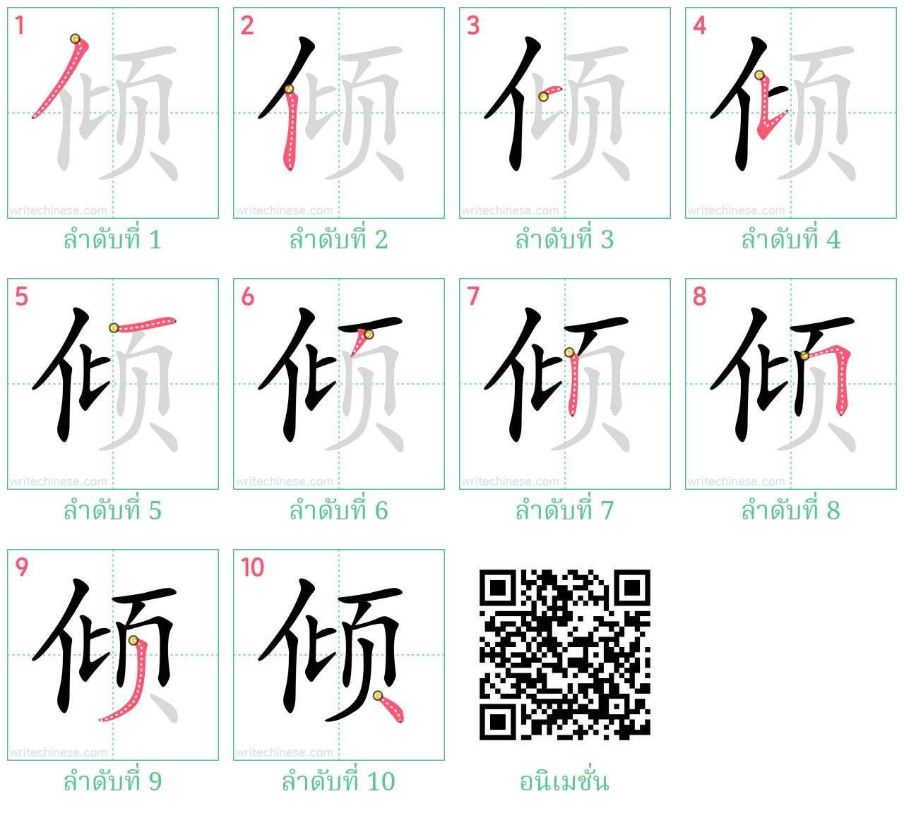 เรียนรู้การเขียนอักษรจีน "倾" ขีดละขีดด้วยคำแนะนำขั้นตอนที่ชัดเจน