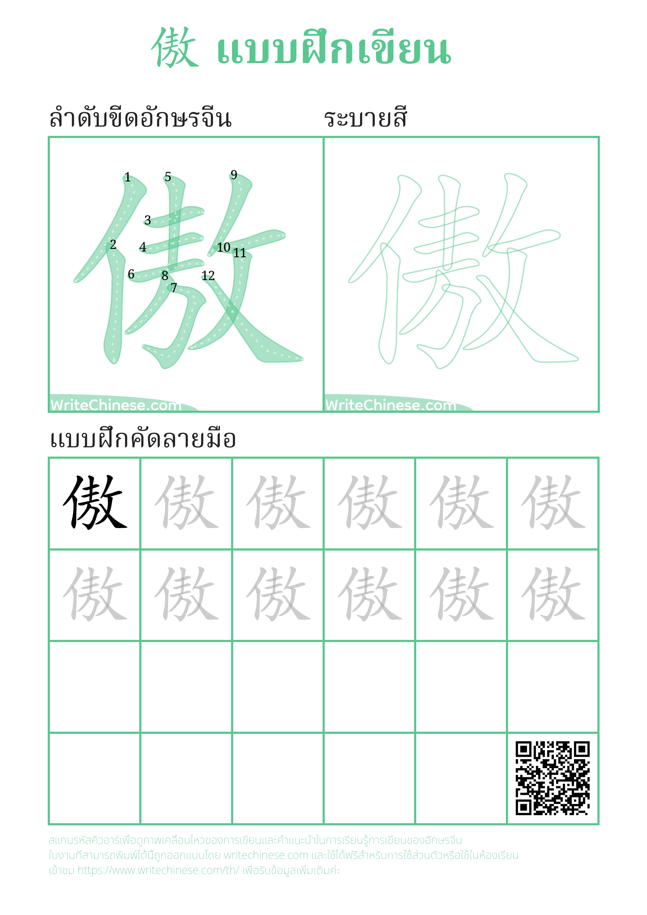 เรียนรู้การเขียนอักษรจีน "傲" ขีดละขีดด้วยคำแนะนำขั้นตอนที่ชัดเจน