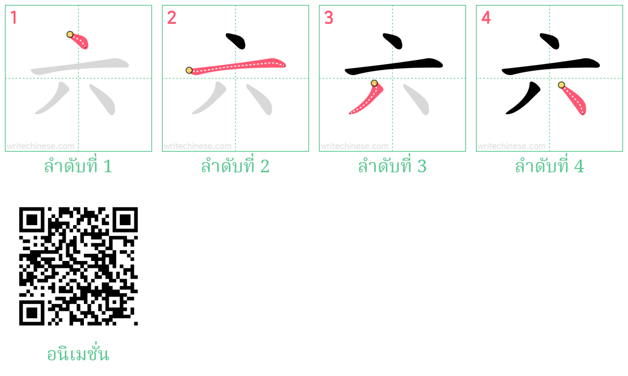 เรียนรู้การเขียนอักษรจีน "六" โดยการดูภาพเคลื่อนไหวของลำดับการเสียบเส้นของ "六"