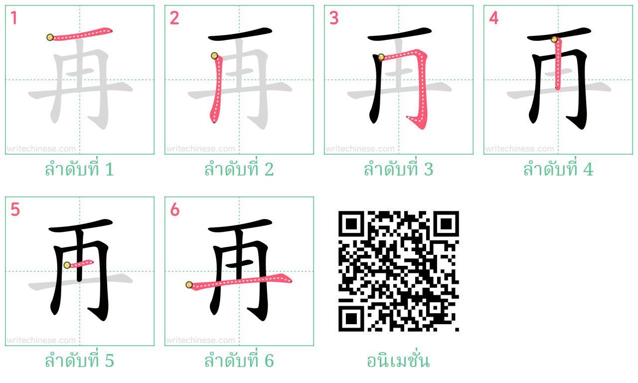 เรียนรู้การเขียนอักษรจีน "再" โดยการดูภาพเคลื่อนไหวของลำดับการเสียบเส้นของ "再"