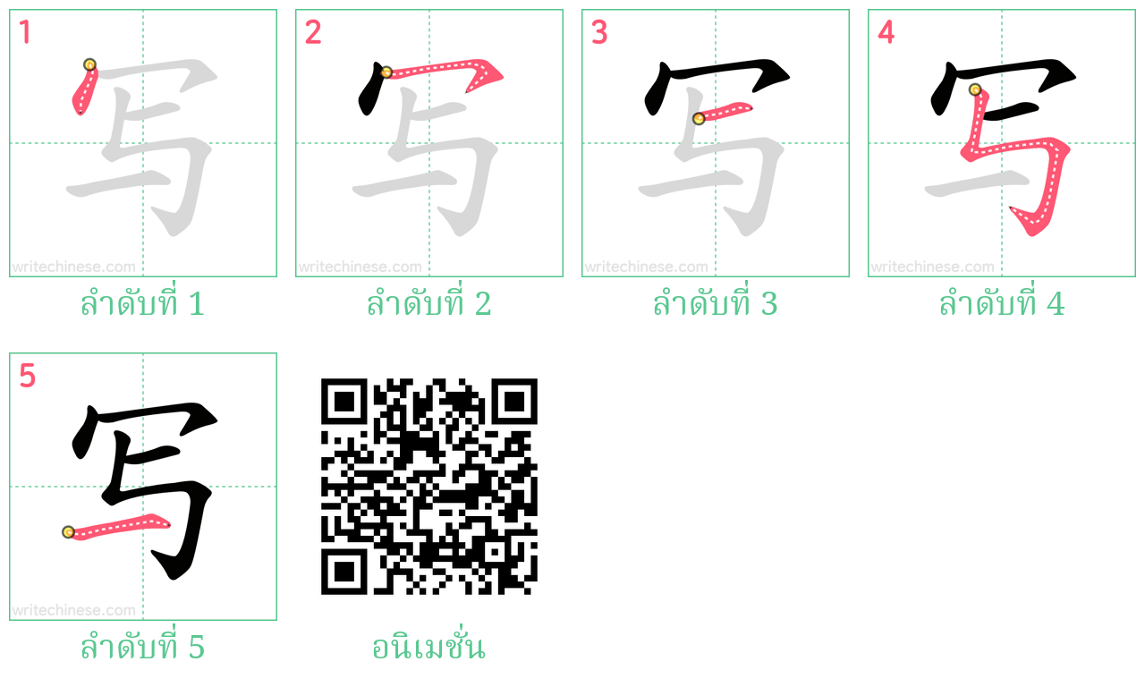 เรียนรู้การเขียนอักษรจีน "写" โดยการดูภาพเคลื่อนไหวของลำดับการเสียบเส้นของ "写"