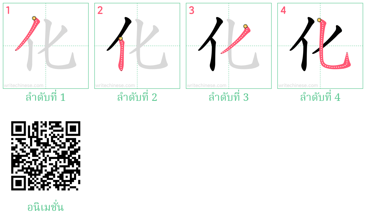 เรียนรู้การเขียนอักษรจีน "化" โดยการดูภาพเคลื่อนไหวของลำดับการเสียบเส้นของ "化"