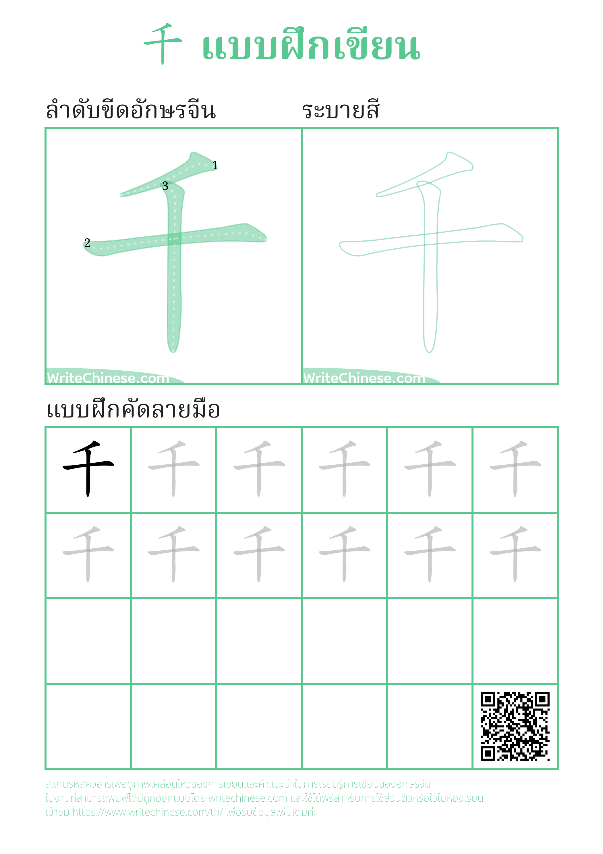 เรียนรู้การเขียนอักษรจีน "千" ขีดละขีดด้วยคำแนะนำขั้นตอนที่ชัดเจน